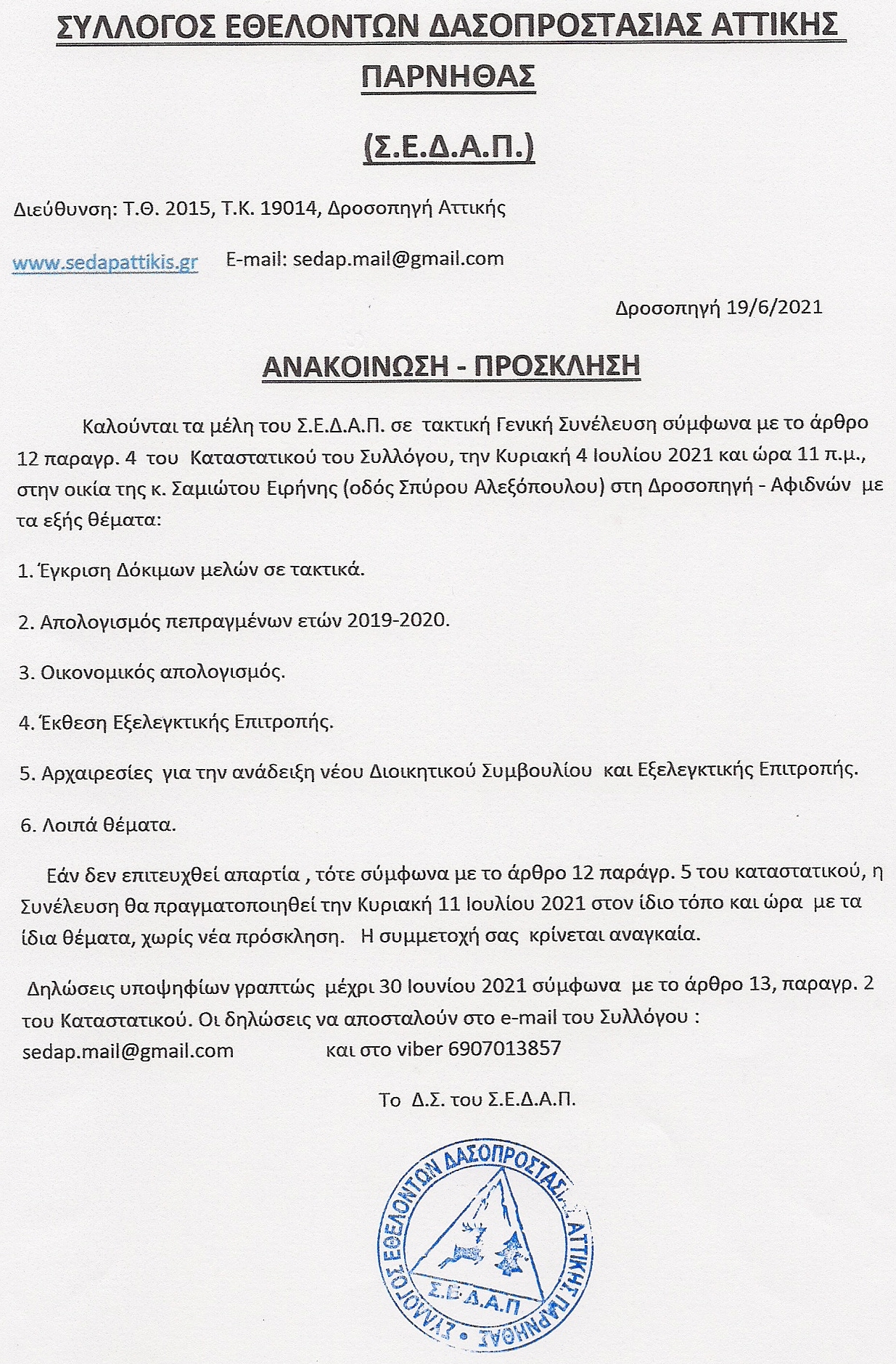 ΣΥΛΛΟΓΟΣ ΕΘΕΛΟΝΤΩΝ ΔΑΣΟΠΡΟΣΤΑΣΙΑΣ ΑΤΤΙΚΗΣ ΠΑΡΝΗΘΑΣ (Σ.Ε.Δ.Α.Π)